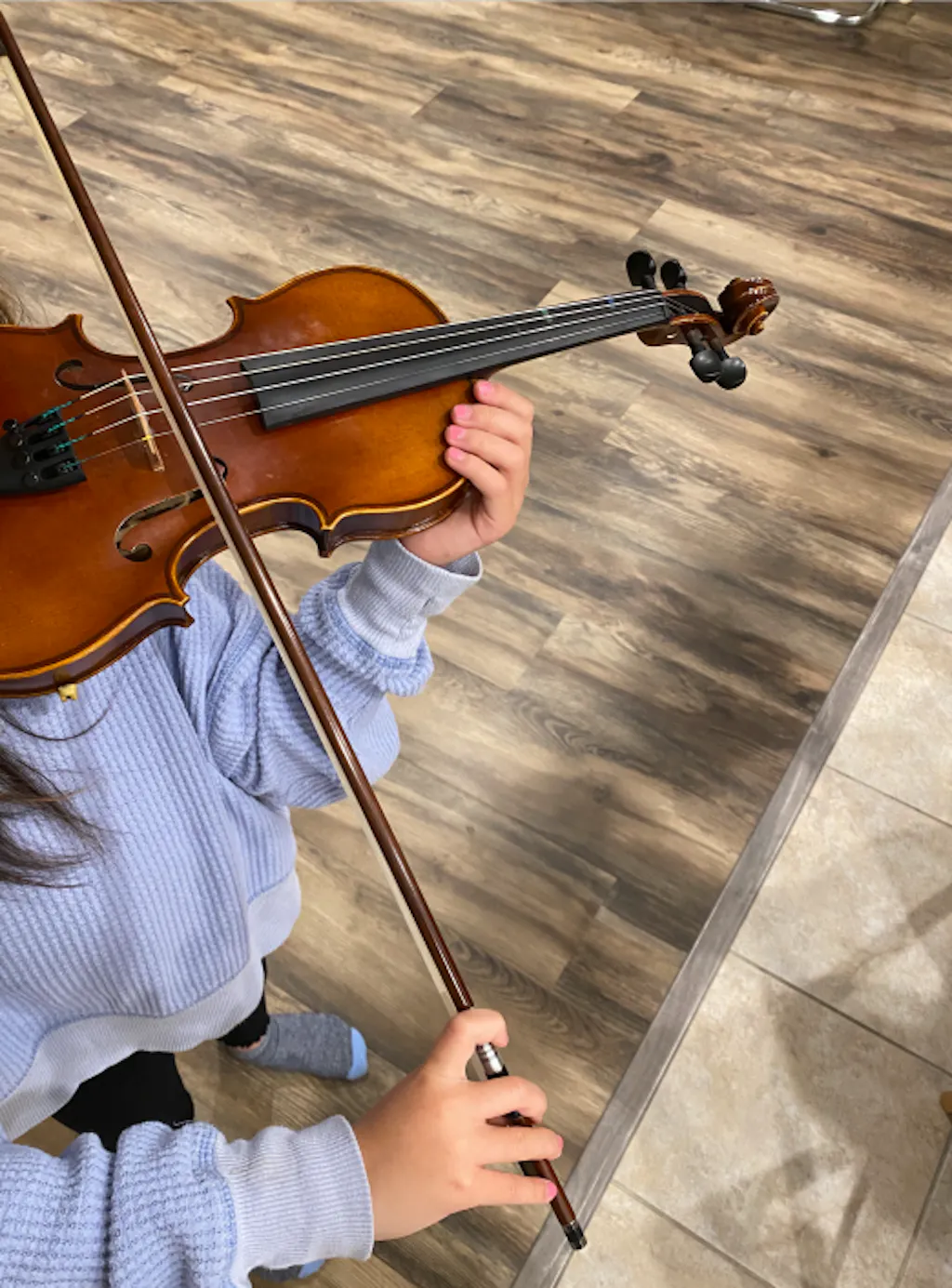 Check the violin size chart and select the appropriate size.